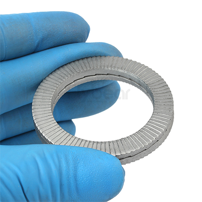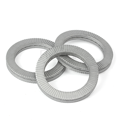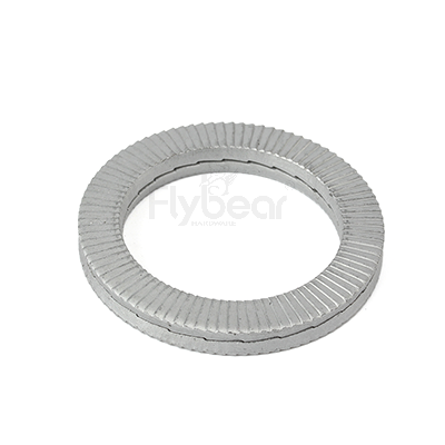 雙疊結(jié)構(gòu): 雙疊設(shè)計增加了墊圈的厚度和接觸面積,增強(qiáng)了自鎖效果,能夠有效防止螺栓在振動環(huán)境中的松動。