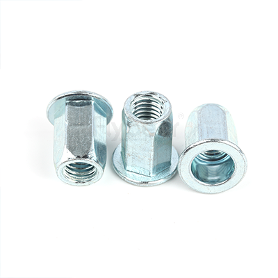 碳鋼藍(lán)白鋅平頭六角鉚螺母GB17880.5 規(guī)格尺寸:M8-1.25*18 標(biāo)準(zhǔn)號(hào):GB17880.5 材質(zhì):碳鋼 頭型:平頭六角 400-086-9919